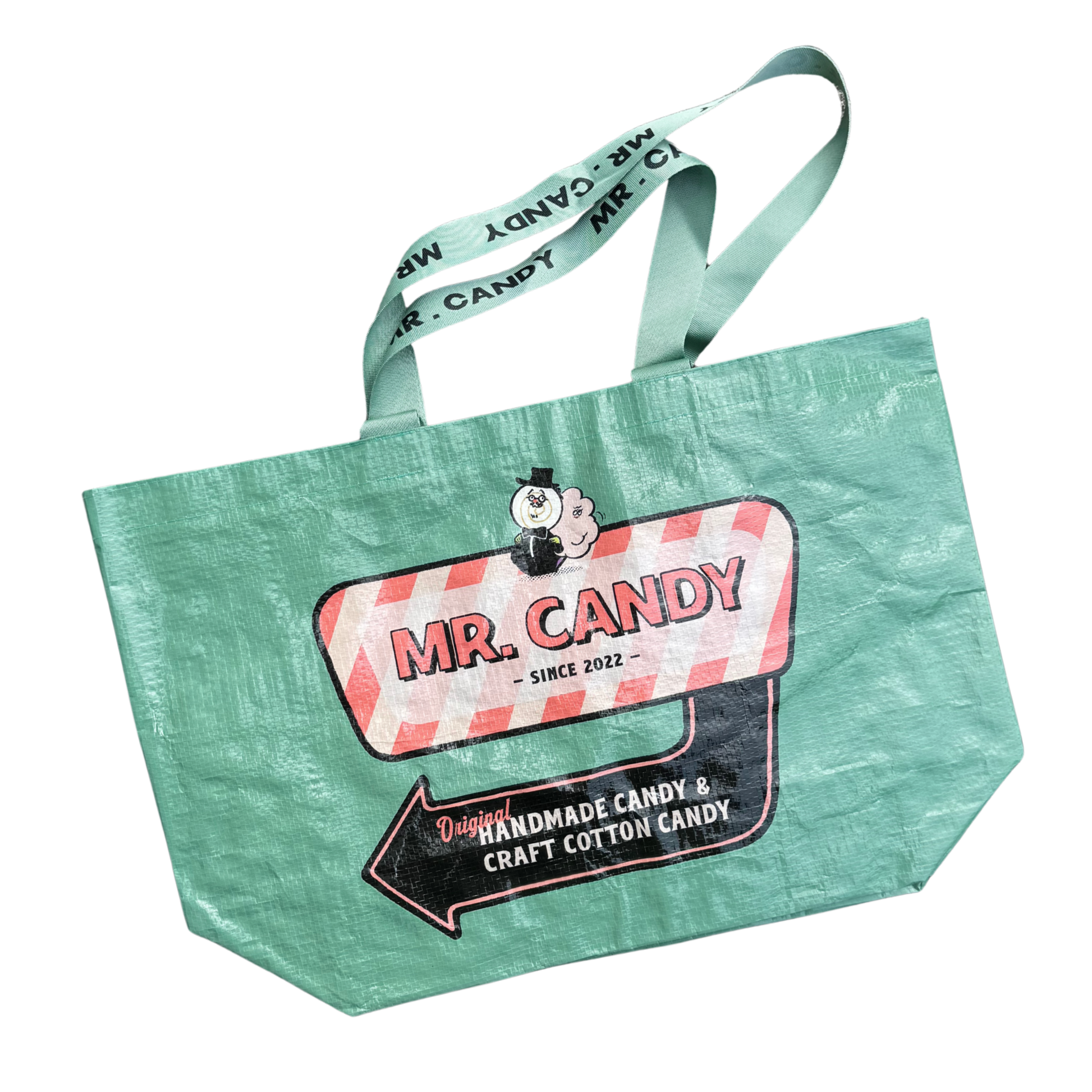 Mr.CANDYの文字入りの2種類の紐付きで肩掛けも可能です。